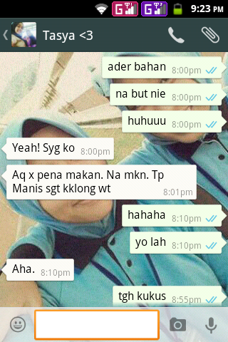 bile da jumpe sume barang ur,.. p chat dia.. wahh suke betol dia.. lawak betoi minah nie.. aku pulak yg risau.. takut ta menjadi.. sbb mse aku buat kali pertama dulu ta menjadi.. kali kedua pun aku hurmmm entah la.. hik3.. :p